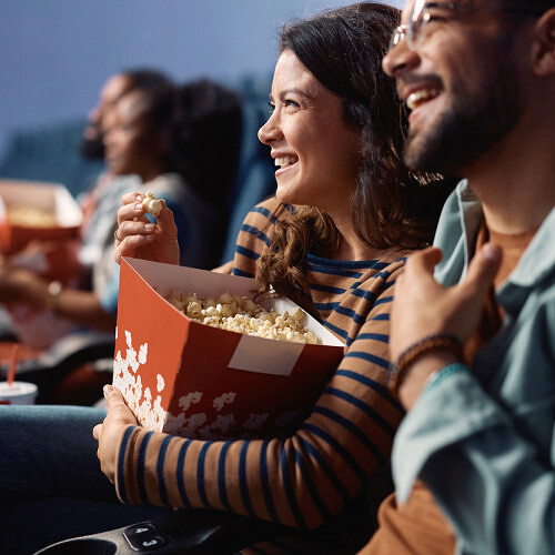 Im Ticketpreis sind Popcorn und Getränk inkludiert und warten ganz bequem im Kinosaal.
