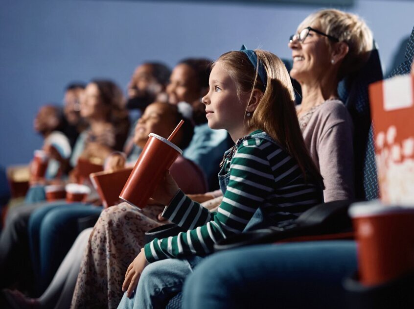 Im Ticketpreis sind Popcorn und Getränk inkludiert und warten ganz bequem im Kinosaal.
